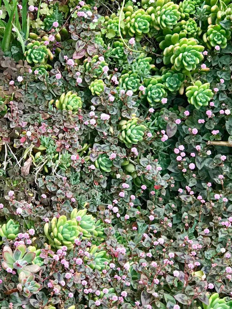 グリーンとピンクの綺麗な色合いになっています💓ピンクのお花はヒメツルソバかな。