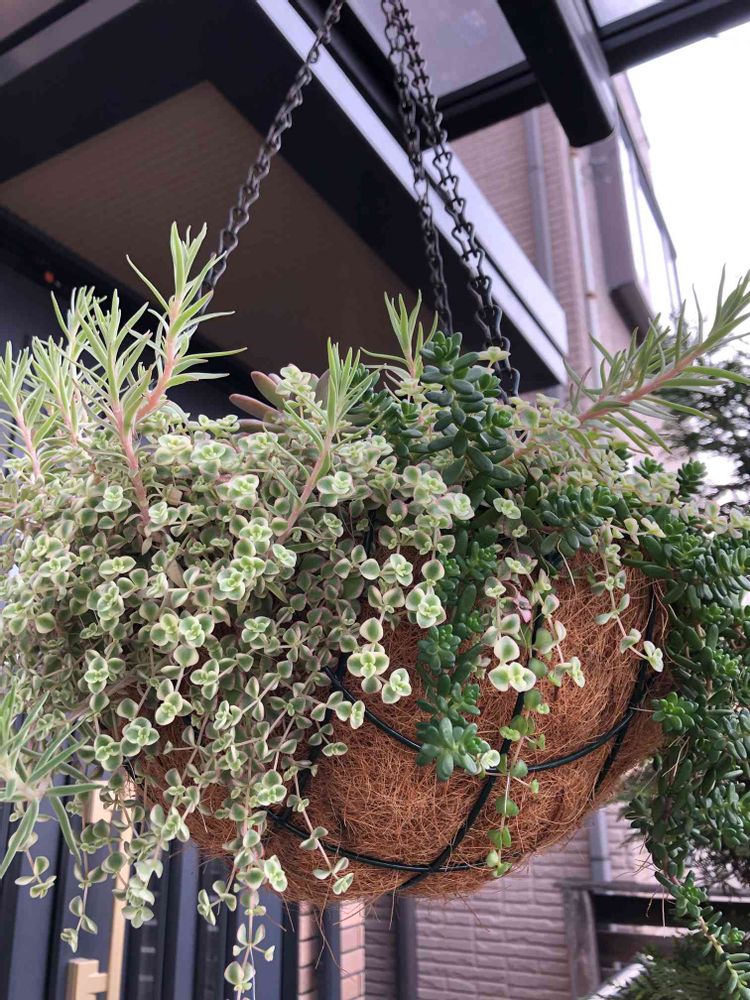 玄関にぶらさがっているセダムの吊り鉢❣️