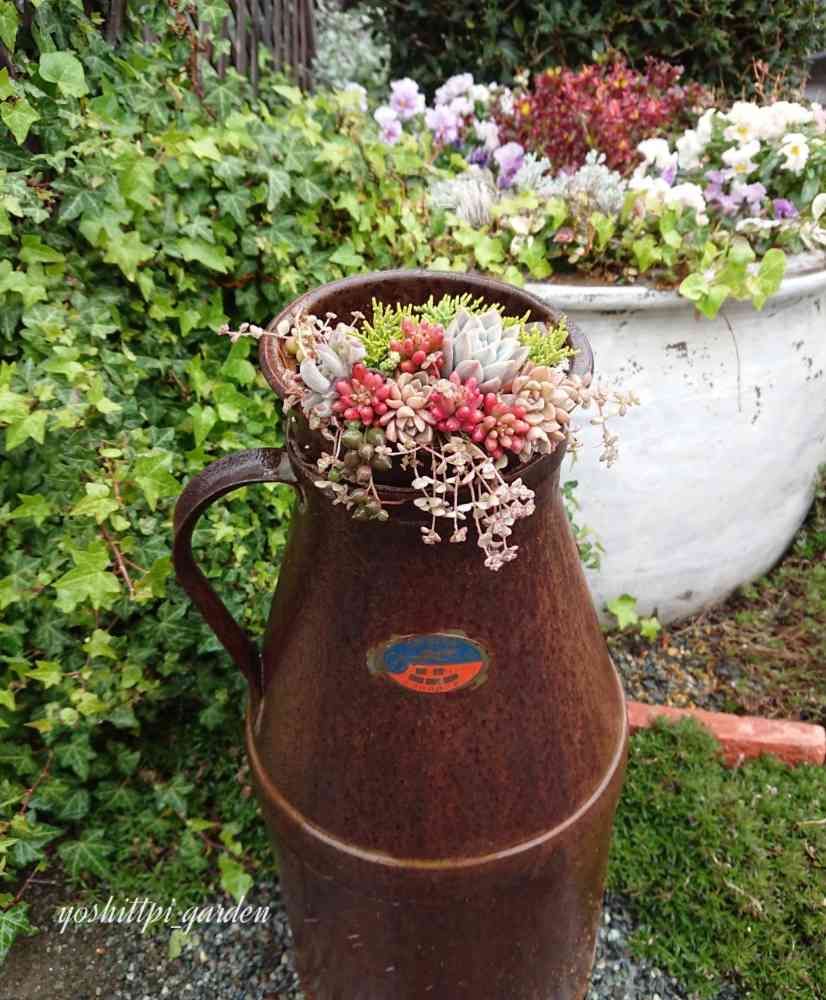 雨上がりで、多肉チャンも錆び✴✴のmilk缶も色がいいです。