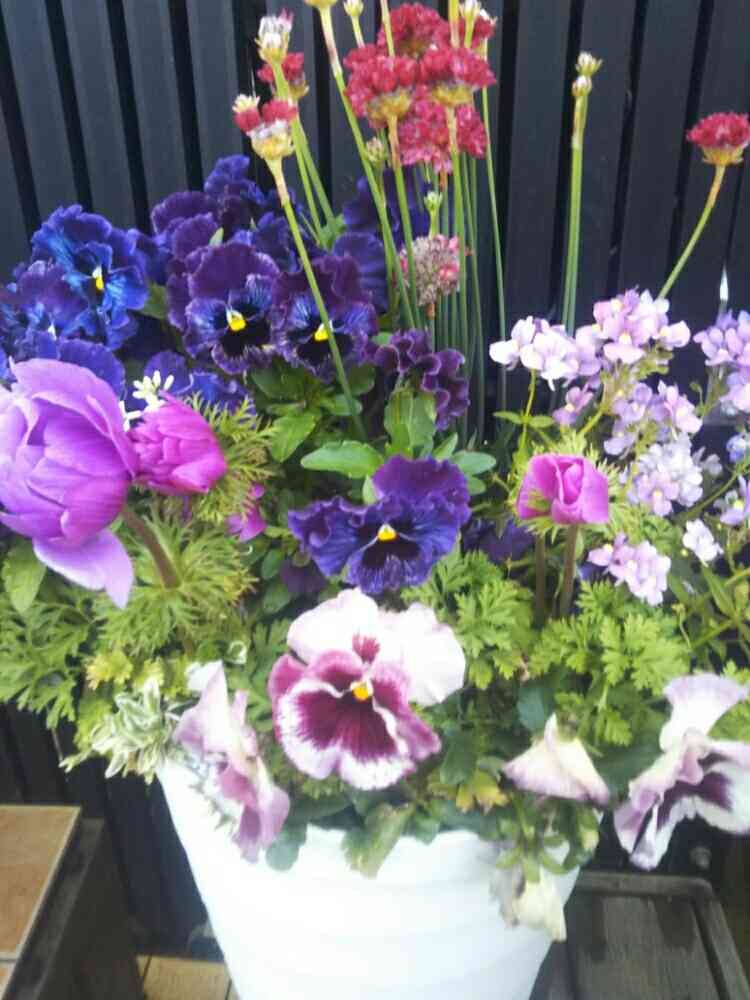 ピンクのアネモネは寒い冬を越え、どんどん花芽🌱があがっています✨ブルーと白系のパンジーも寒風と時には雪⛄のおかげでさらに美しくなっています😃