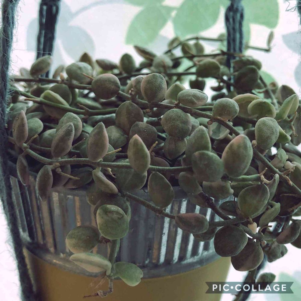グリーンネックレスの粒を潰した?ような硬い葉です。