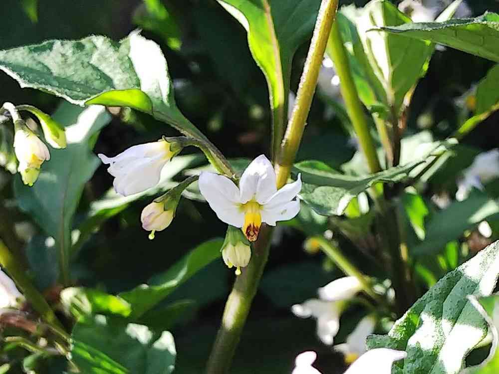 小さな、じゃが芋の花の様な白い花がぎょうさんついてます。