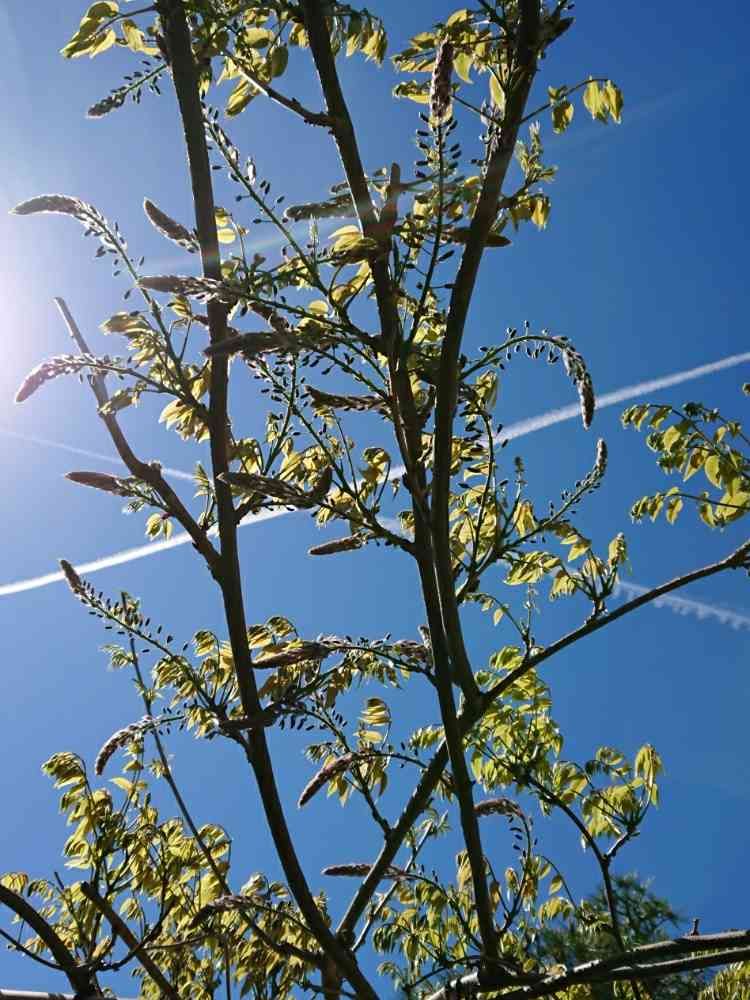 青空に飛行機✈️と藤の蕾が素敵です😃今年初めての開花が楽しみですね🌼