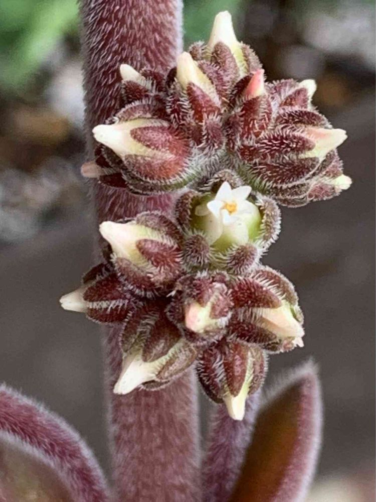 モケモケ多肉のフェルグソニアエのお花、ようやくひとつ開き始めました❣️