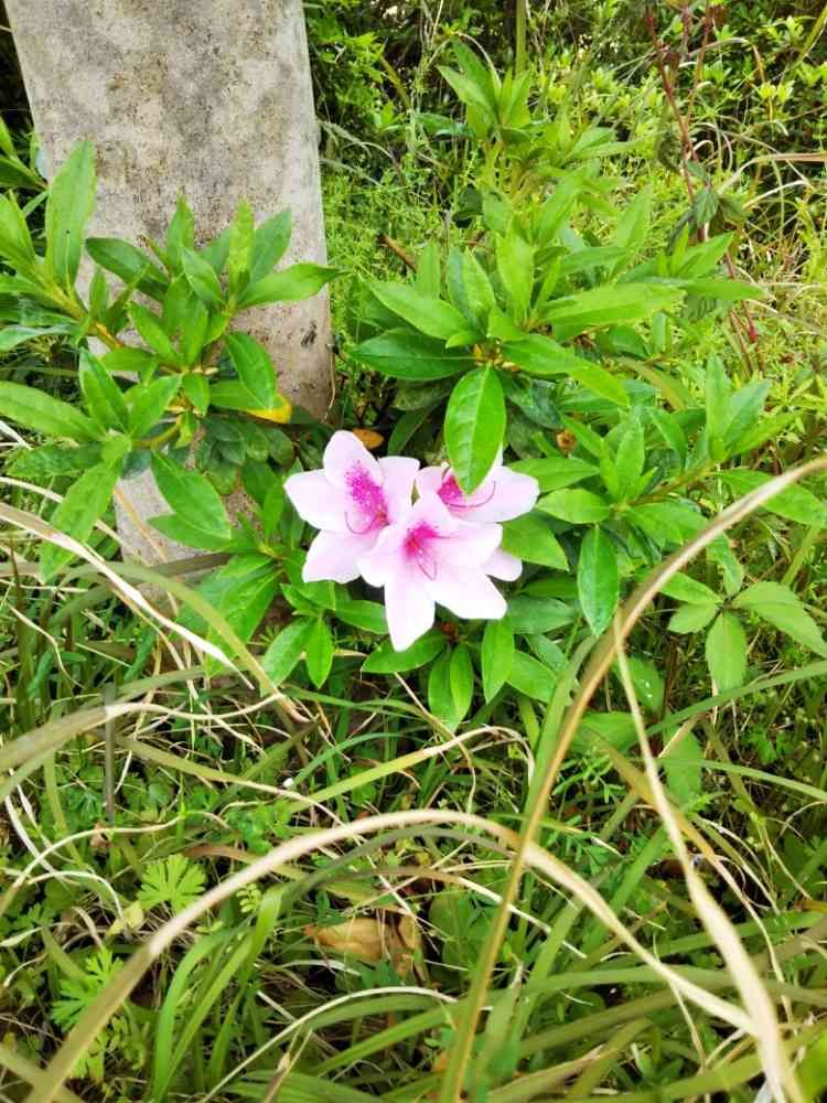 山茶花の木の足元にそっと咲いてたツツジ🎵