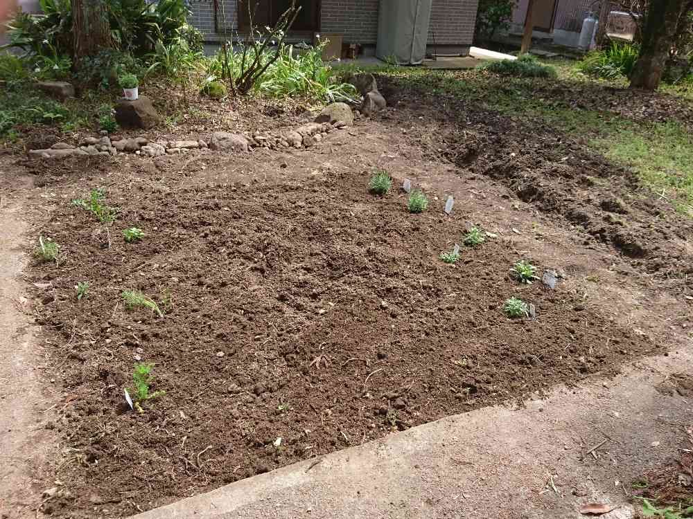 今日はお休みで天気も良かったので急ピッチで作業を進め、購入してた苗を植えるとこが出来ました😄