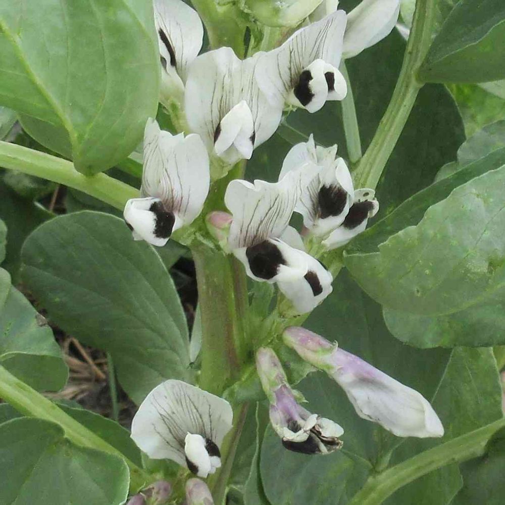 ソラマメの花?近所を散策中にドキッ!😲白い花に大きな黒目です。初見の花なので検索、ソラマメの花ではないかと思いますが間違っていましたならご教示をお願いします🙇
