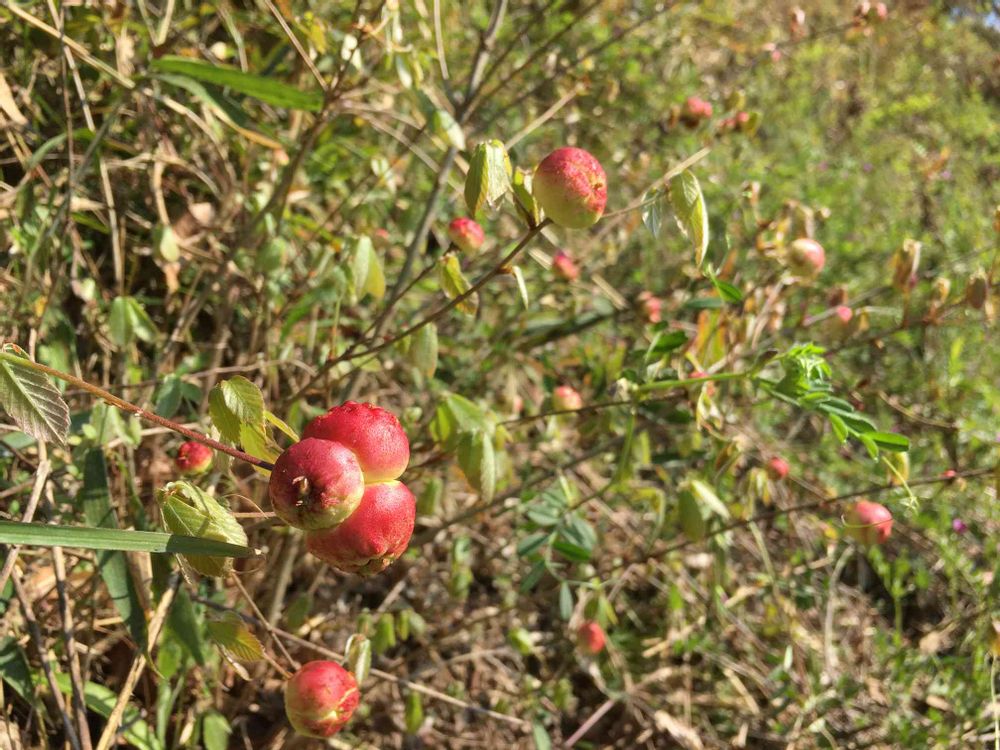 ふと仕事中に斜面を見上げると何やら赤い点が見えるので、何の植物だろうと近づいてみると虫コブでした😅