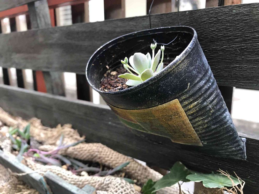 リメ缶に、お友達からいただいた子持ち蓮華を乗っけてみました(*´ω`*)