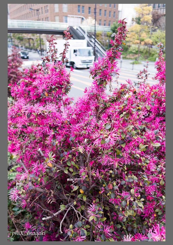 大阪堂島の公園でトキワマンサクを見ました。あの赤い花は何だろう,近づいてみてすぐに細長い花びらで分かりました。図鑑で見たことはあったけど,実際には初めて見て感激。都会の公園はGSスポットとしてなかなか良いところですね。