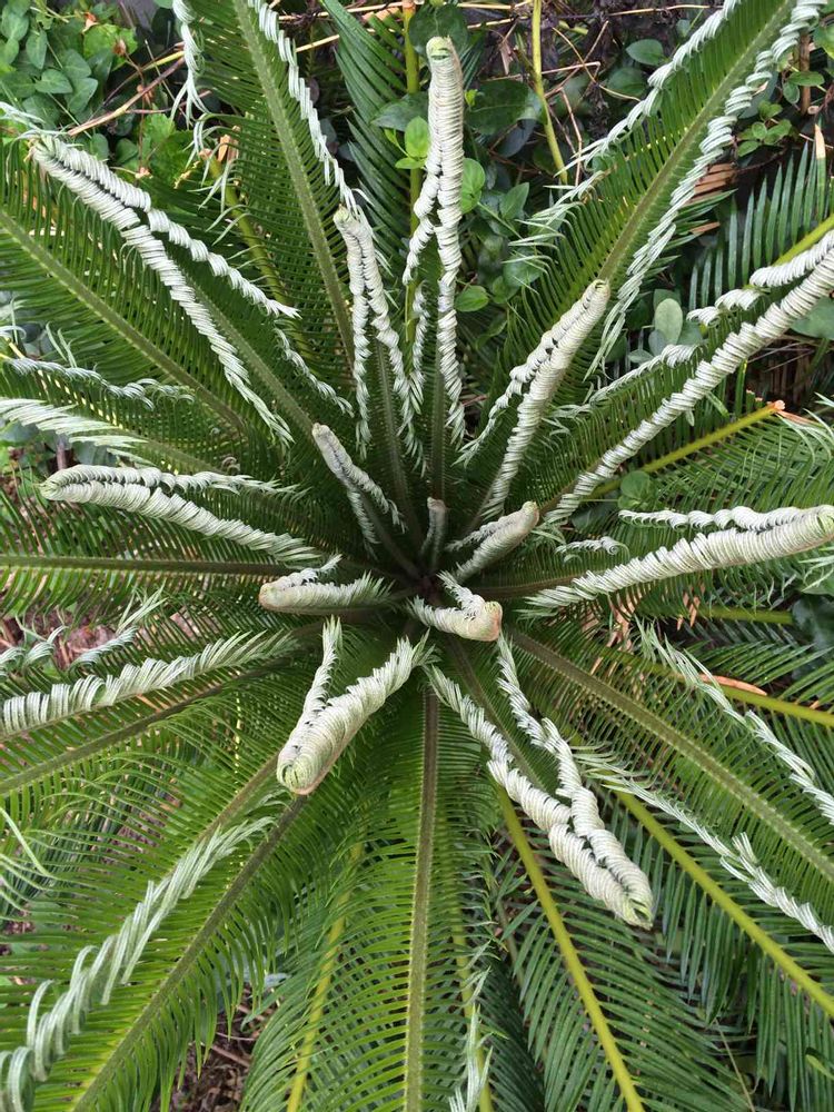 わ!のんさんのお家はソテツもあるんですか!('Д')葉裏が白いってことなんでしょうか?上から撮ると又綺麗ですね~♪