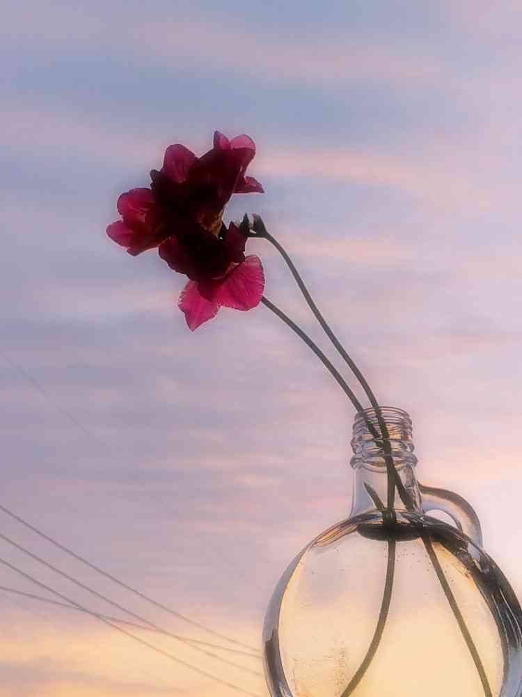 はい、久しぶりでした。夕空の色に呼ばれた気がして、慌ててガラス瓶に挿したフリージアを窓辺に置きました。