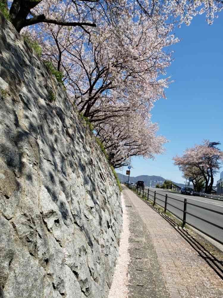 なだらかな上り坂なんですけど道端に桜の花弁がたくさん積もってました。