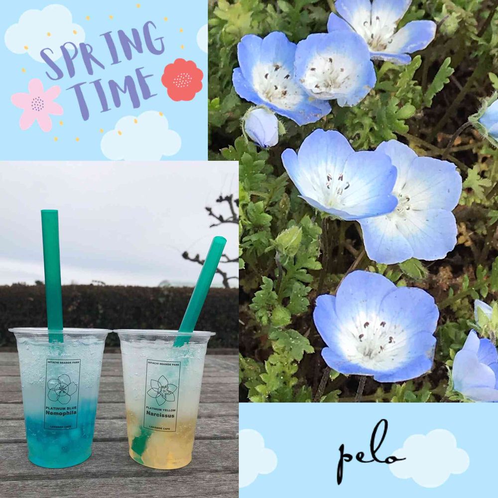 ネモフィラブルーとスイセンイエローのドリンクはタピオカとゼリーが入って美味でした😋