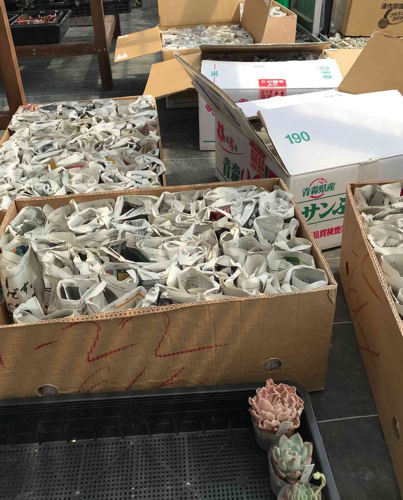 サボテン相談室から苗が届く時は、いつもこのように1つ1つ新聞紙で包まれて送られてきますよ😊