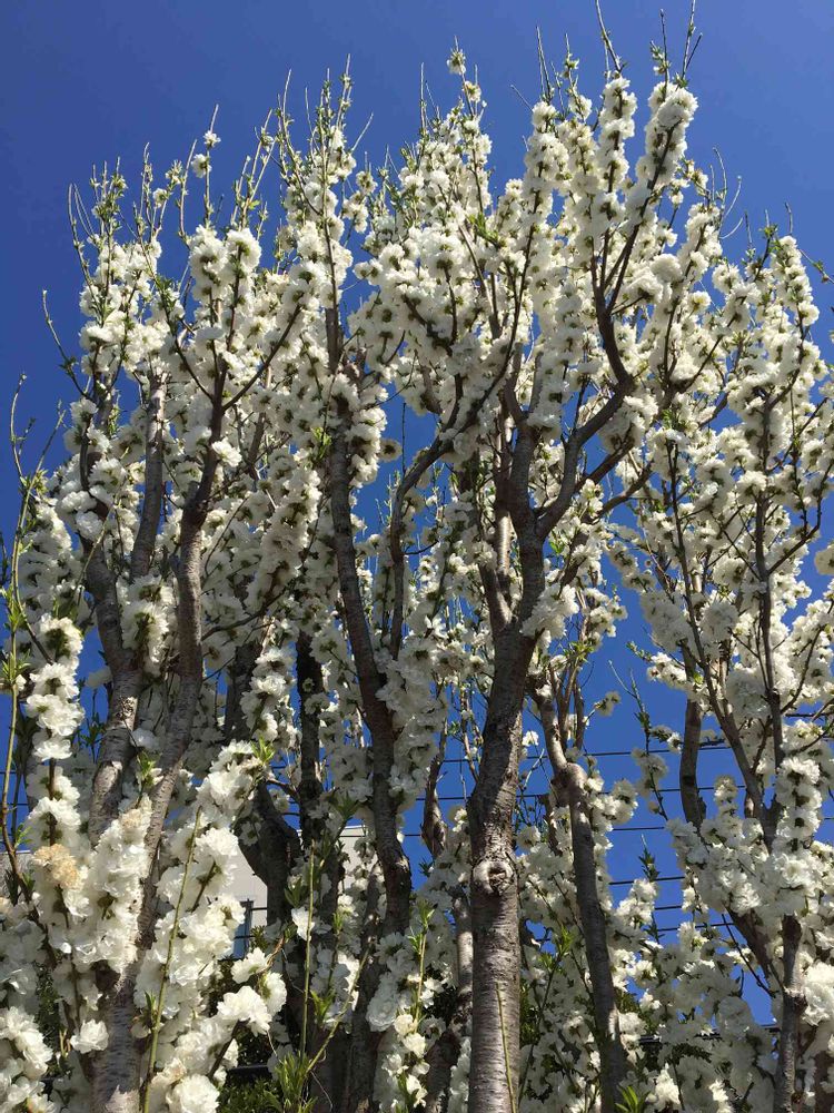 爽やかな青空の下、すっくと伸びた枝にぎっしりといった感じで咲いています(^^)
