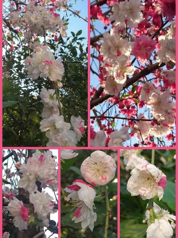 あっちこっち、源平咲きのハナモモ見かけると写してます😆🎶