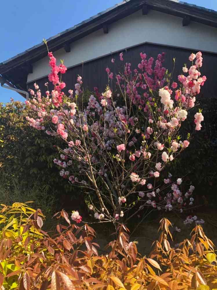 花は八重、色は白から濃いピンクが間様っています、鈴の様に揺れていました名前を教えて下さい😂