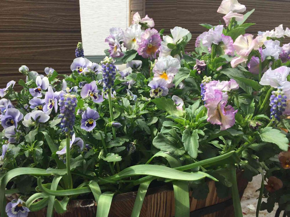 ムスカリも咲きました。ビオラもフリルパンジーもいっぱい咲いてくれました☺️
