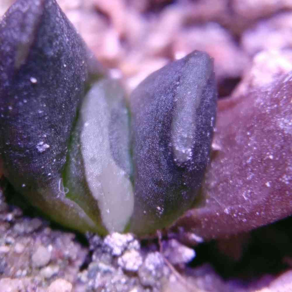 ハオルチア(玉扇・原種という事で購入した)の実生(種まきから564日目)の株の斜め上からの写真です。