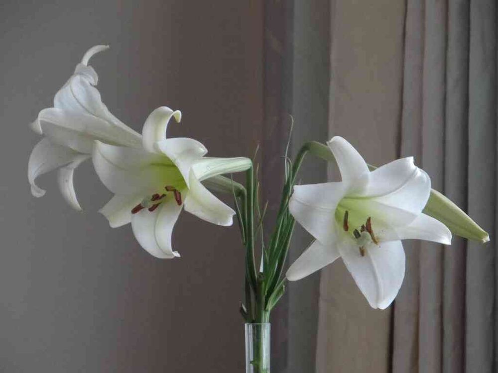 風が少し弱まったところでカットしてきました。結構しっかりとした立派な百合に、家族でほぉー…'(*゚▽゚*)。