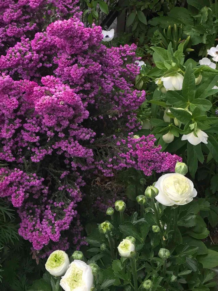 奥に見える白いお花はこぼれ種から今年初めてお花が咲いたクリスマスローズです💓