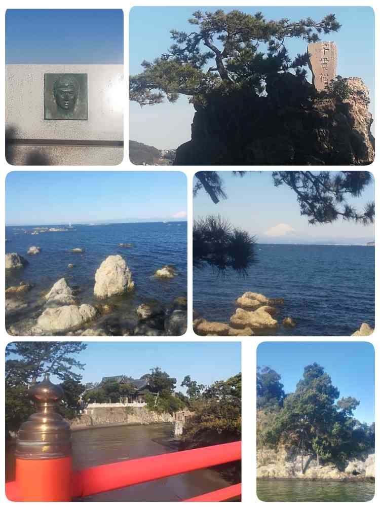源頼朝公が衣笠城に向かう途中、森戸の浜で 休憩した折、岩上の松を見て、"如何にも珍しき松よと褒めたところ、出迎えた和田義盛が千貫の値ありとて千貫松と呼びて候"と答えた といういわれがあります🤔