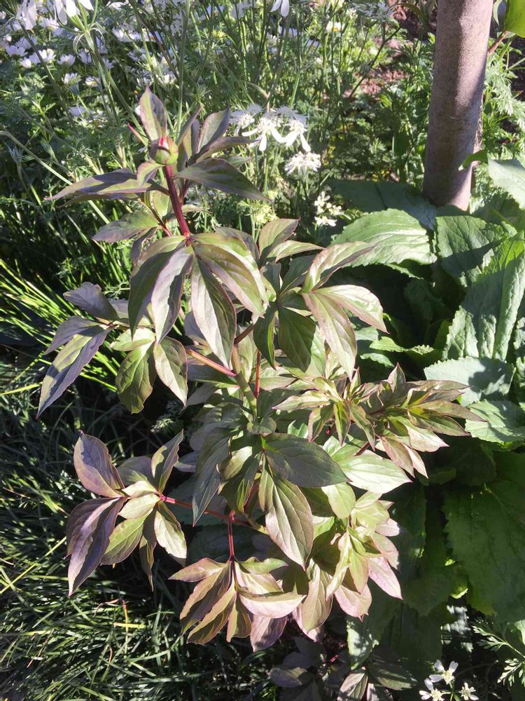 芍薬(ピンク)お花は1つ🌸❓ジキタリスの影になって伸びてきた枝で心配しましたが、元気に成長しています。