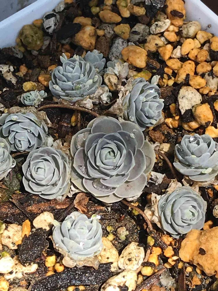 これ、斑入りの子持ち蓮華で去年お迎えしたのに、あれ?斑が消えた⁉️