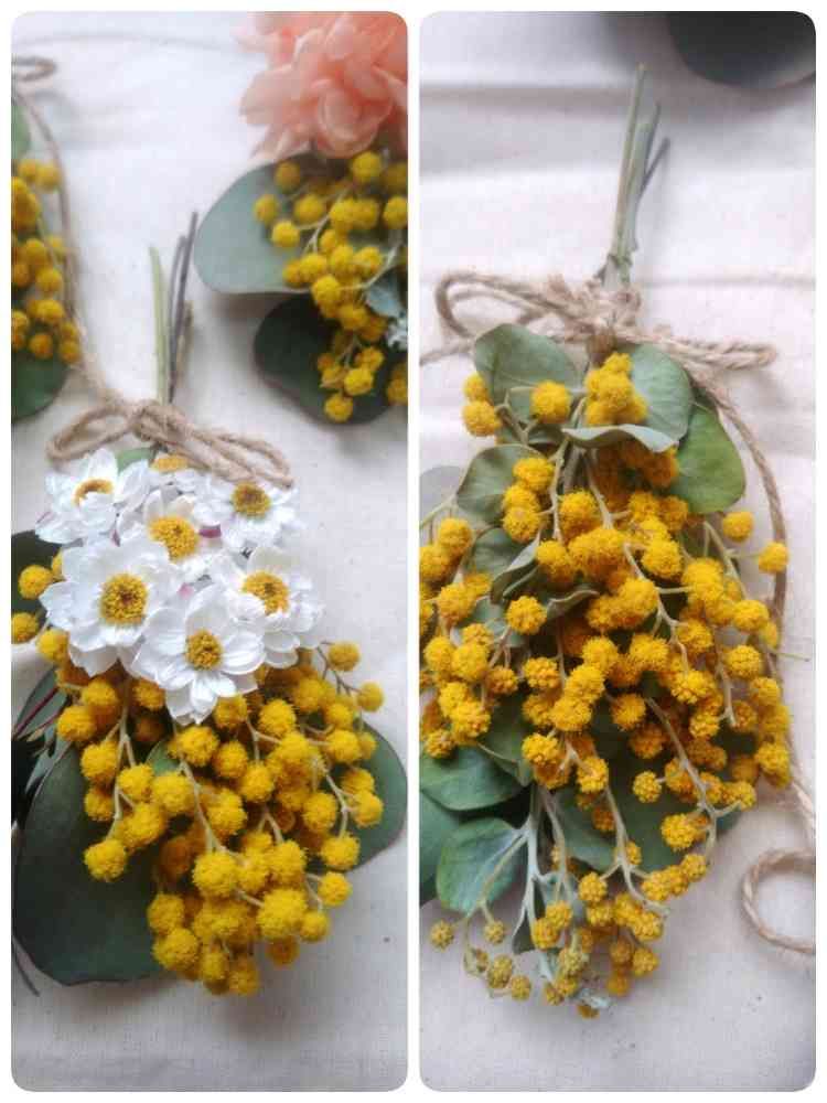 ミモザをドライにしてそのままです。可愛いちっちゃいはなかんざしとの花束素敵ですね🎵