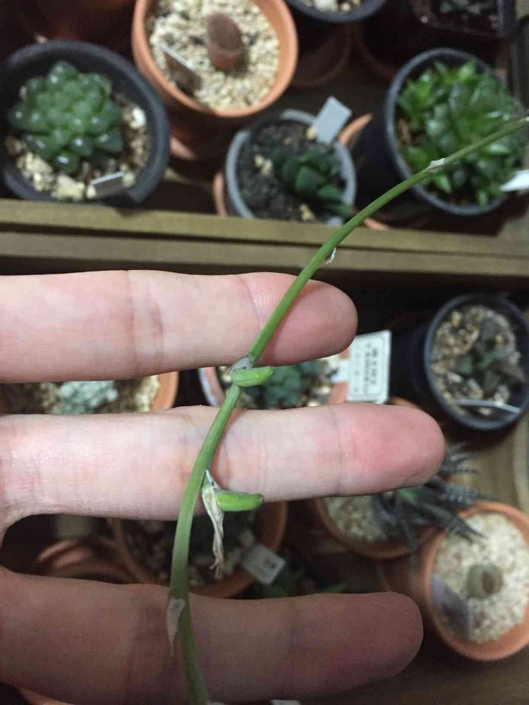 初めてハオルチアの受粉にチャレンジしました。玉緑とピクタの掛け合わせだと思います(多分)。