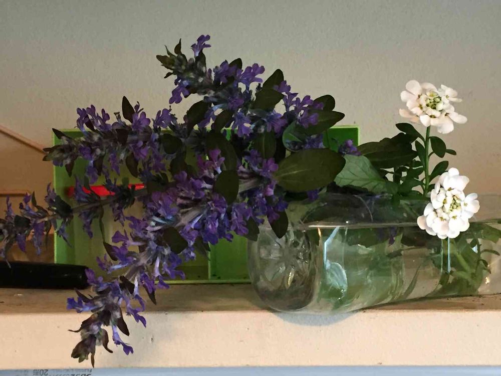 庭に咲く アジュガ🍀部屋の中でも眺めたいから ペットボトルに入れ 下から眺めています これなら 苦手な家事も楽しみ😊✌️ アジュガ🤙別名 を西洋十二単といいます🌱🌱🌱お花が紫の着物みたいで可愛い💕 私は西洋十二単の名前のがすき〜😊✨✨✨