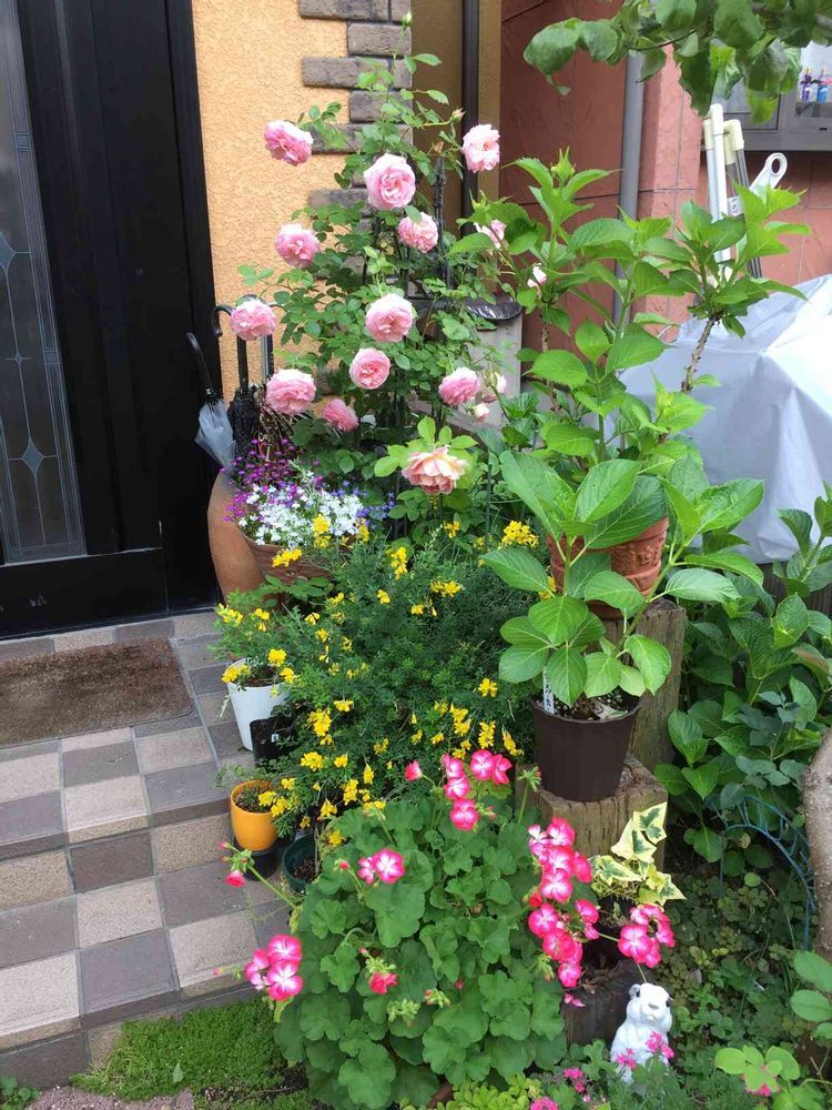 小さな庭,エニシダ,ゼラニウム りんご2000ローズの投稿画像