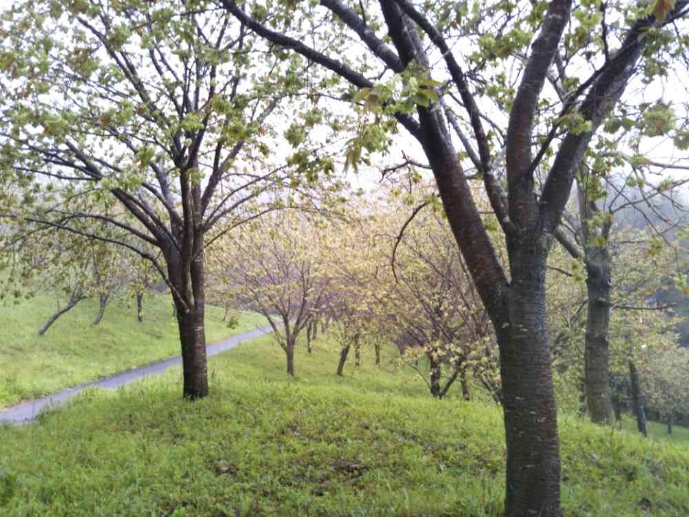 横竹ダムでは、277本の御衣黄桜(ぎょいこうざくら)が咲きます。御衣黄桜とは、八重咲きの栽培種。10~15枚ほどの花びらが黄緑色なのが特徴。その花の色が貴族の御衣に似ていることから、御衣黄桜の名前がついたといわれます。咲き始めは緑色が強く、徐々に黄色になり、そして桃色へと変わっていきます。全国で見られる品種ですが、これだけの本数を見ることができるところは少ないでしょう。開花はソメイヨシノより遅く、他の花見が終わった頃に楽しめます。