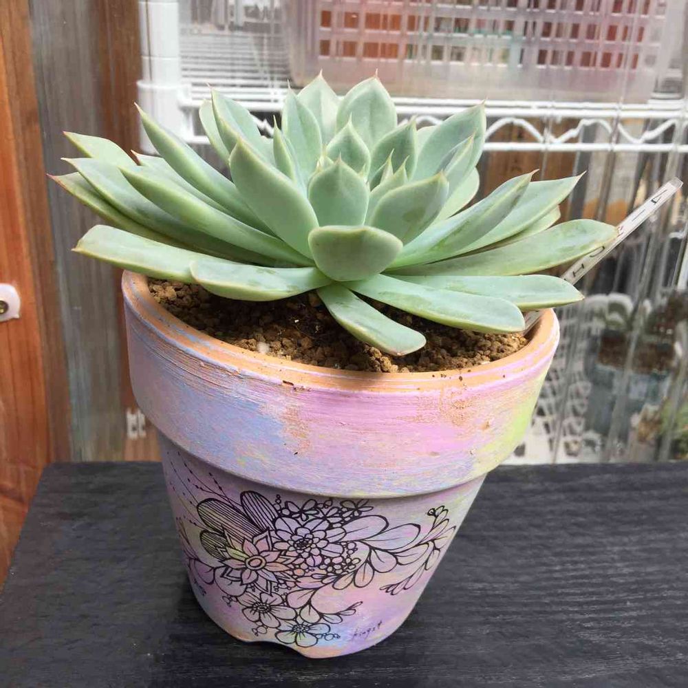 Kings Sazanamido さんのフリーハンドの4号リメ鉢に何を植えようか暫く飾っていましたが、ムーンフェアリーを植えてあげました