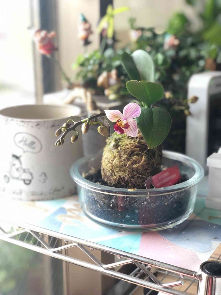 去年作った苔玉のマイクロ胡蝶蘭。今年は2本枝が伸びてきて蕾をいっぱい付けてくれてる。