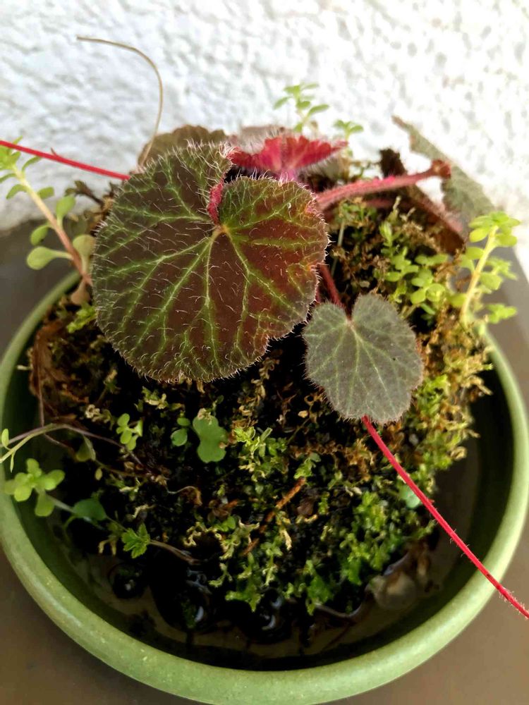 実家の裏庭に出てきたユキノシタと苔をそのまんま苔玉にしてみました😊