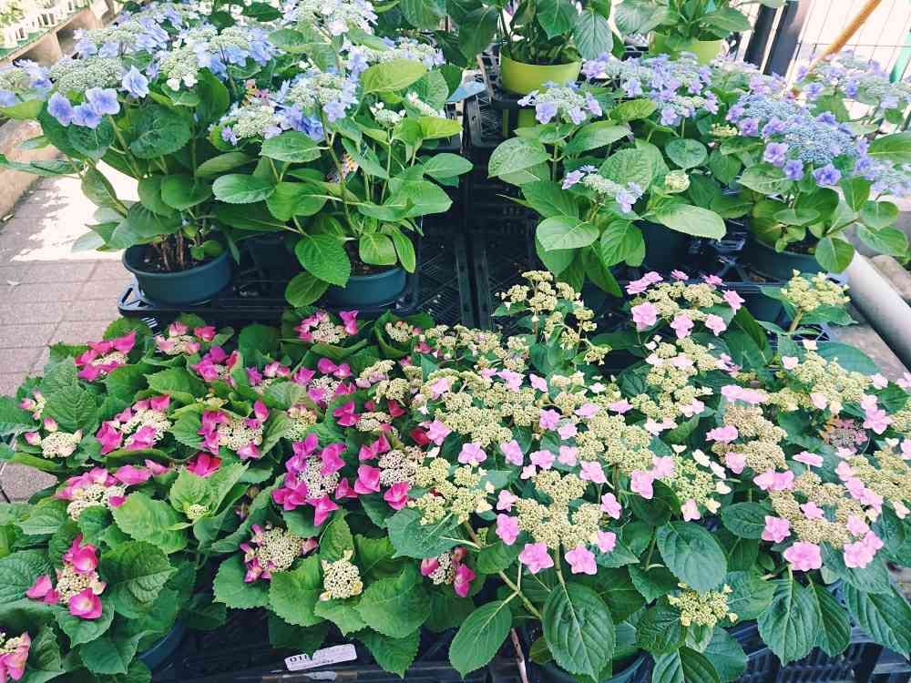 ガクアジサイと普通のアジサイの2種類で色がピンクとブルーの2色です🐘🐔