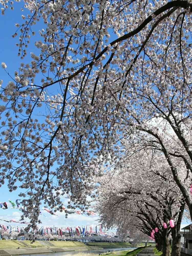 桜の優しいピンク色と鯉のぼりのコラボ🎵