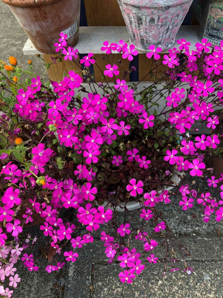 いつものお散歩コースに咲いていました、小さい花ながら目を引く色で、一目惚れ!