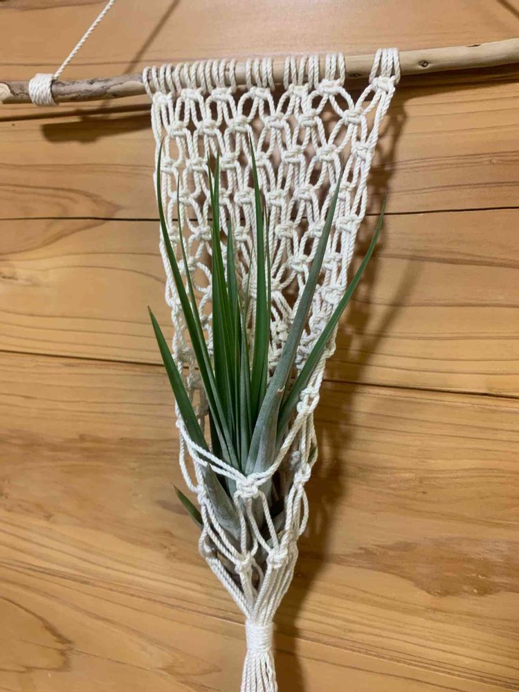 前に木工市でもキーホルダーを編ませてもらったんですが、今回はエアープランツを飾りたくてこちらのタイプにしました😁