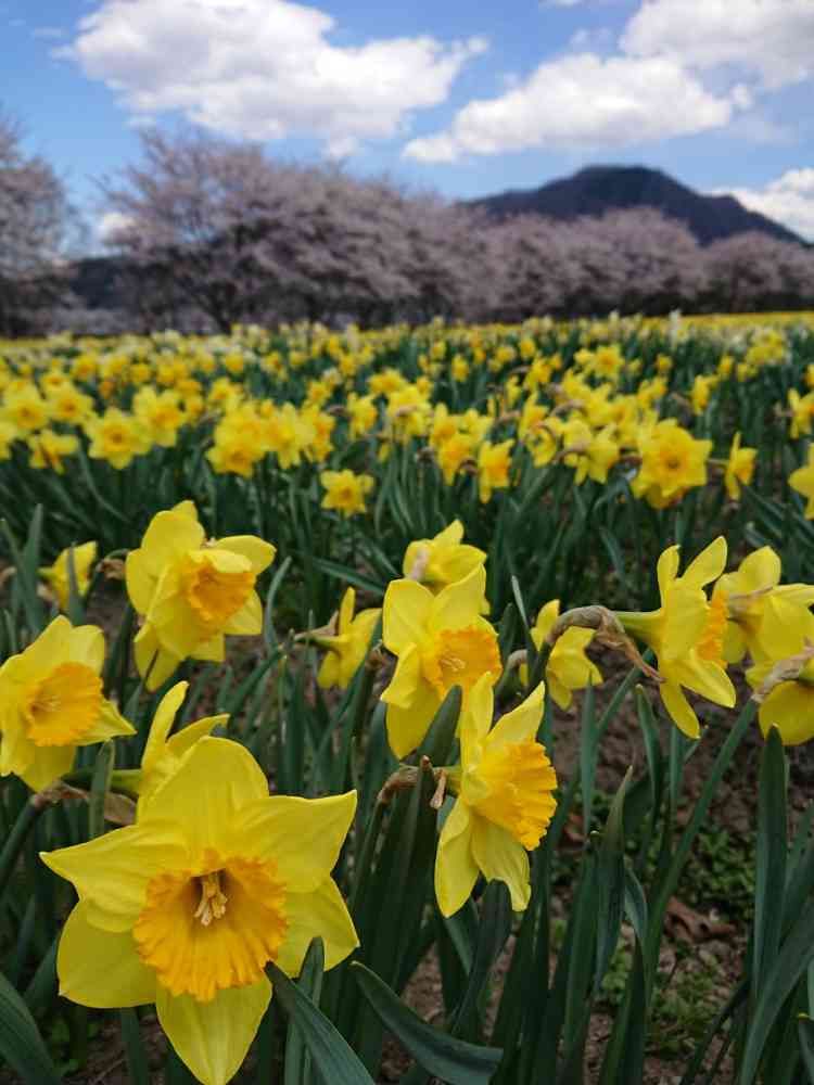 水仙と1kmの桜並木が綺麗でした。