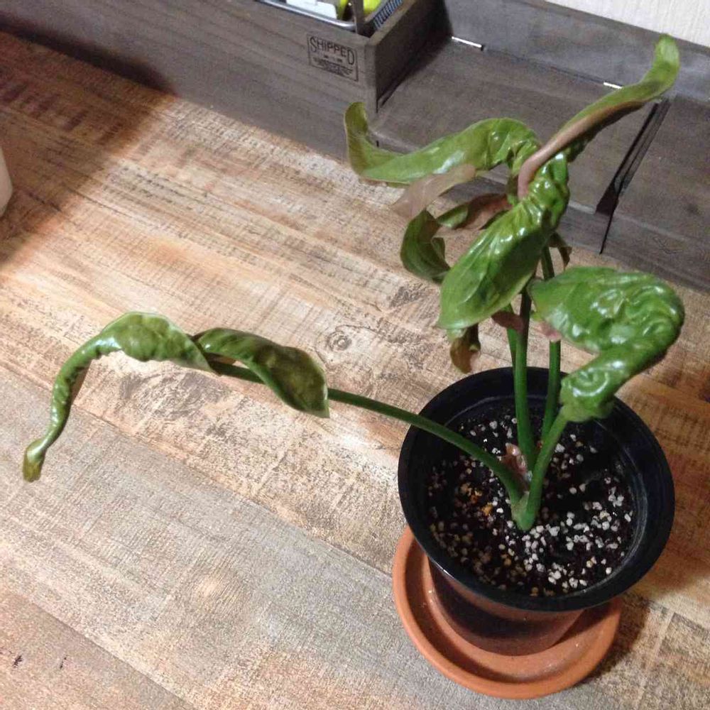水挿しから鉢あげして二週間になるけど、葉っぱがネジネジのままで全然展開しないのは何故なんだ……🤔