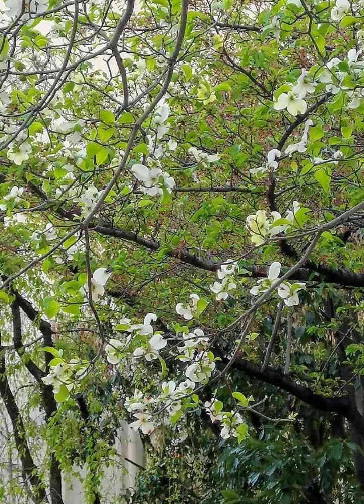 🐾散歩道、上を見上げたらハナミズキがいっぱい😊