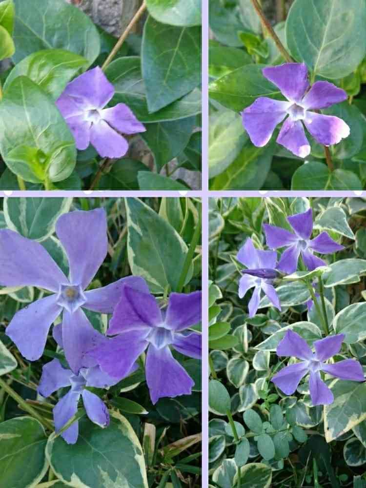 右下は斑入りで花も葉も小さいヒメツルニチニチソウ。