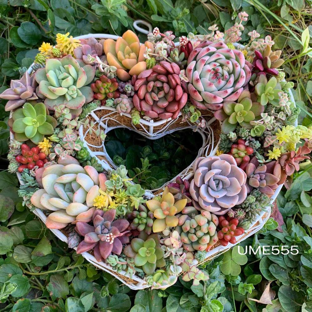 UME555さんの小さな庭,多肉植物リース,ハート型リースの投稿画像