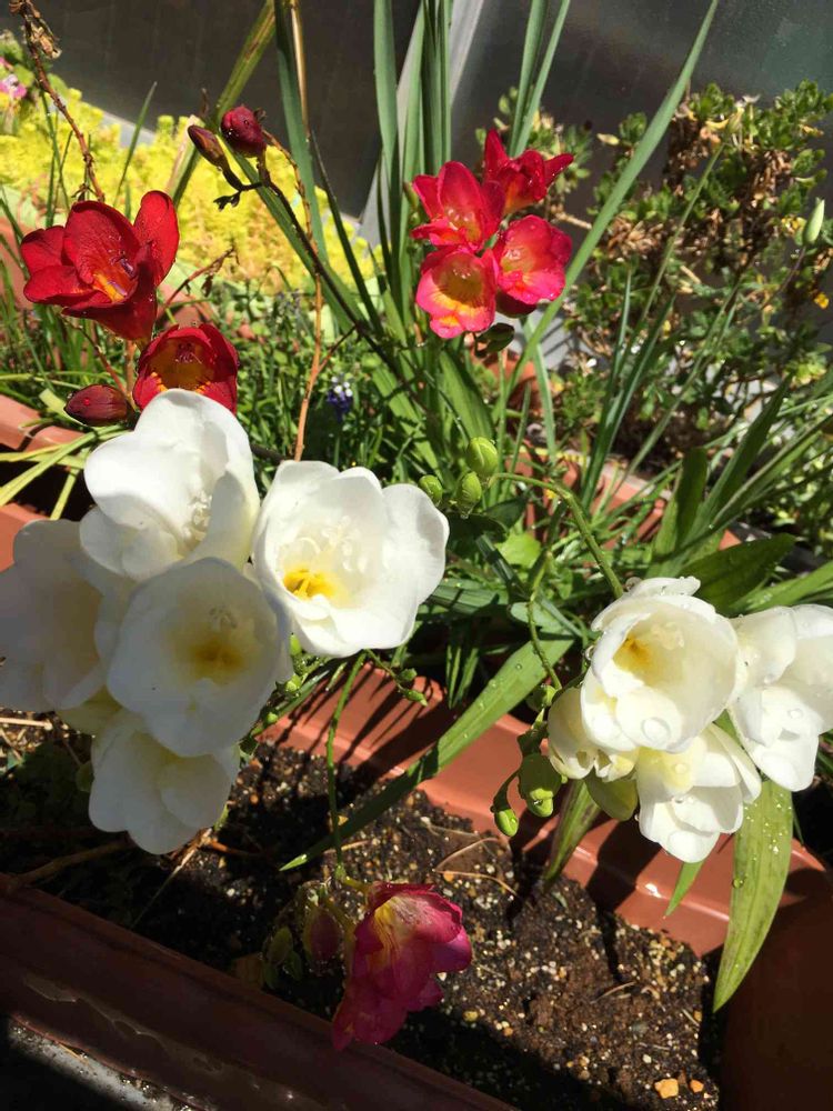 さっちんさんのバルコニー/ベランダ,フリージア,赤い花の投稿画像