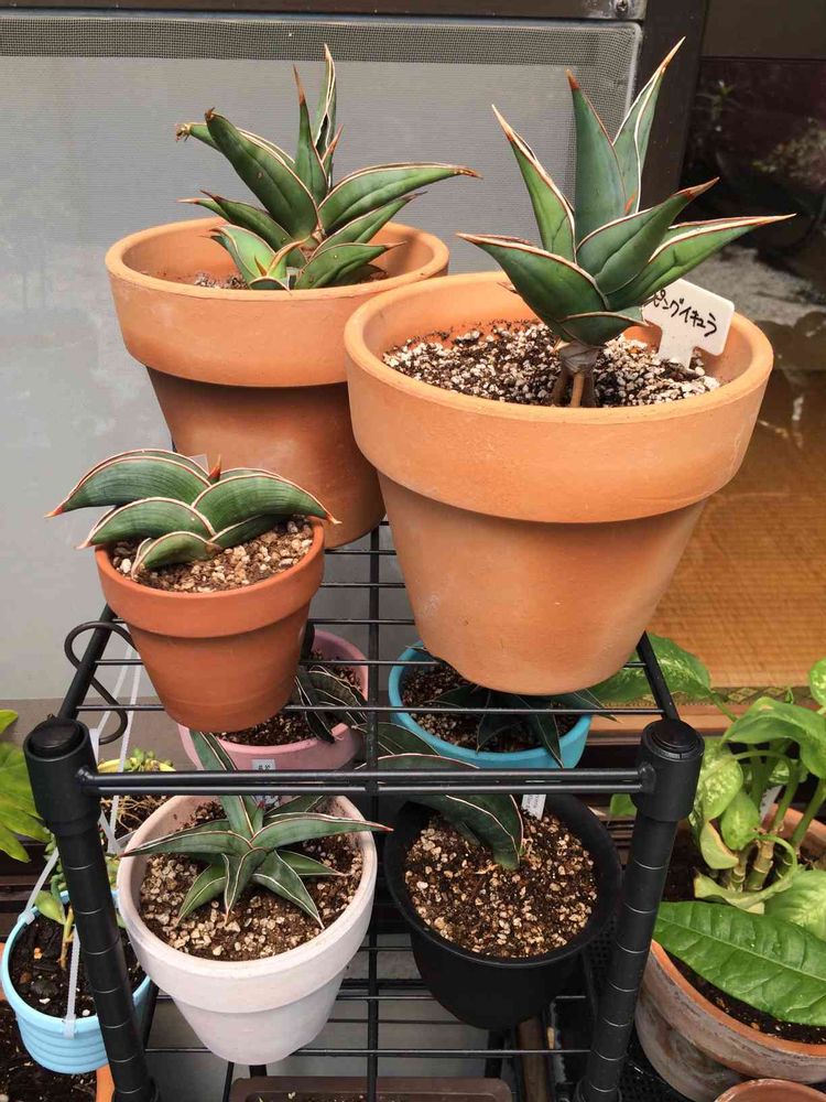 悩みましたがレア組サンセベリアーズもこの陽気につられて外暮らしとするため棚を買いました。