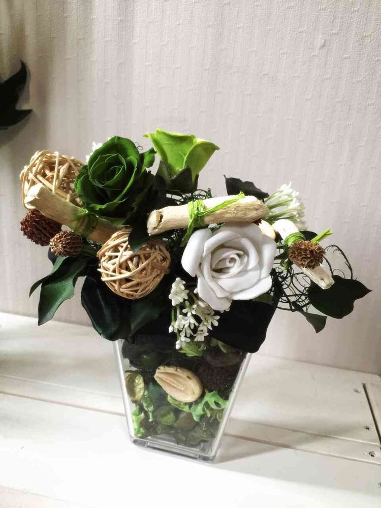初めてのプリザーブド フラワーアレンジメント♪なんとか形になったのかな…