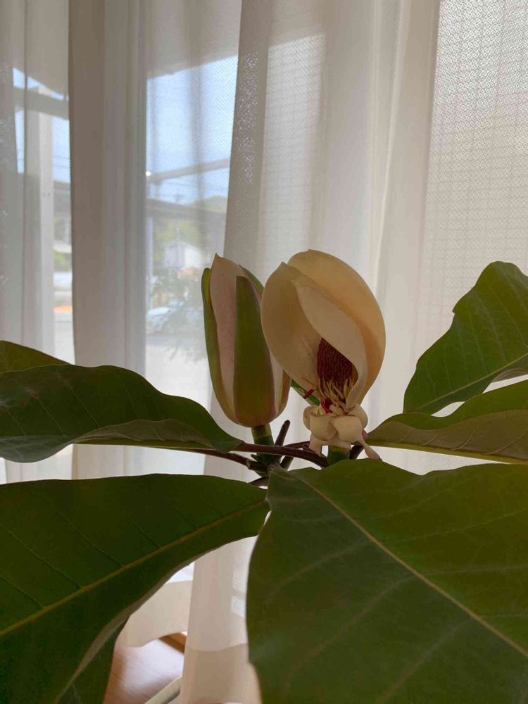 朴ノ木のお花かな☺️大きな葉っぱと大きな蕾ステキですね💚